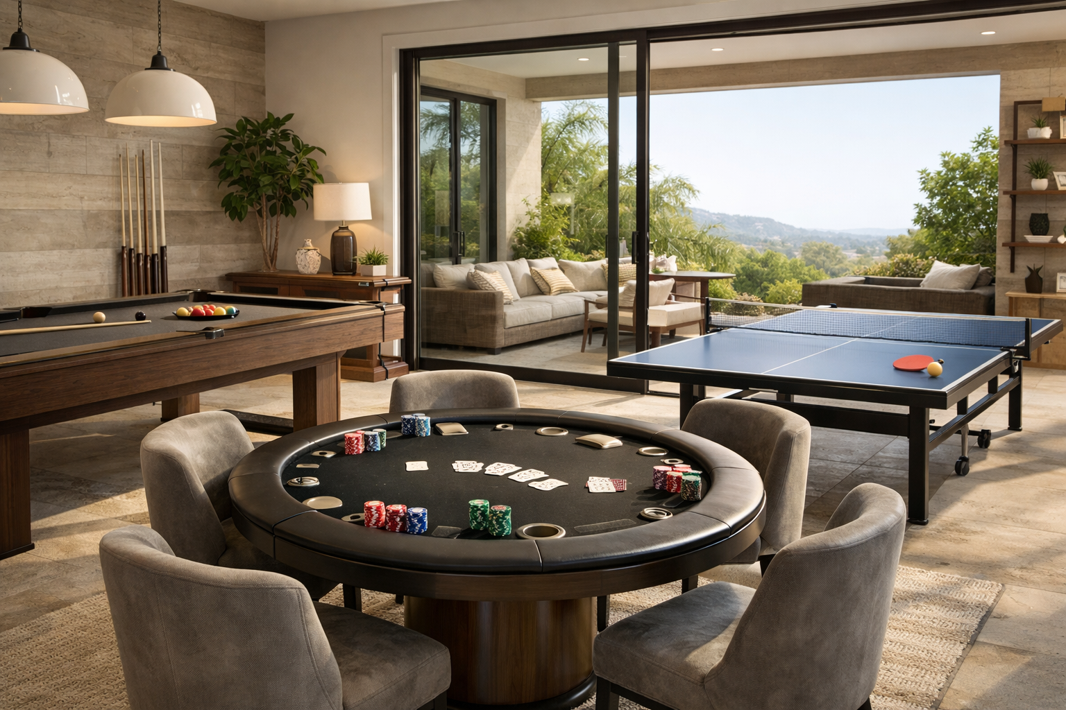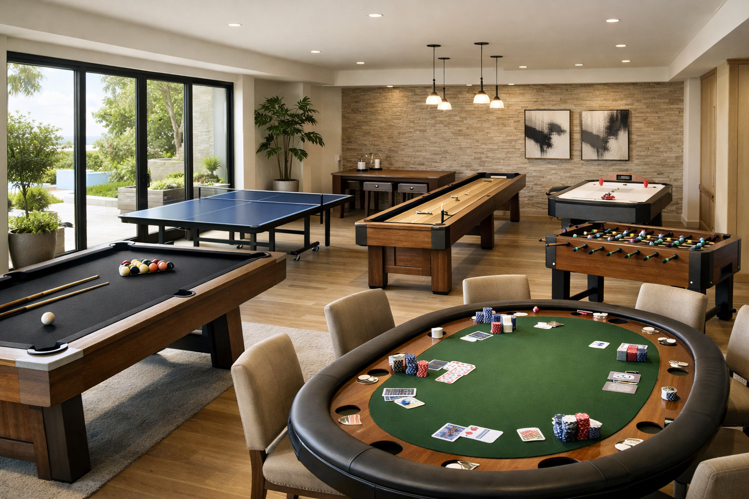 Our poker tables are designed as architectural centerpieces, blending timeless craftsmanship with modern elegance. More than a game, they create an atmosphere of connection and prestige, seamlessly integrating into interiors that celebrate leisure as a lifestyle statement.
