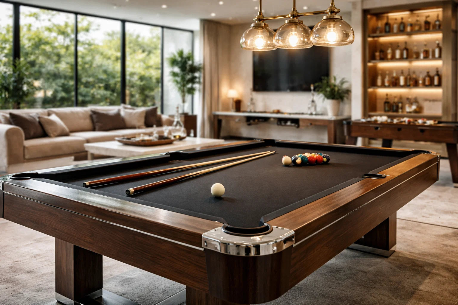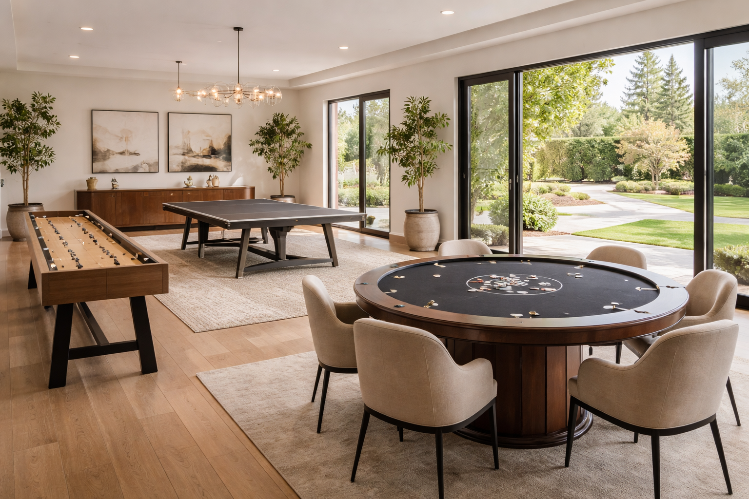 We curate a focused selection of game and entertainment tables, including pool tables, shuffleboard, poker tables, foosball, air hockey, ping pong, and arcade games, chosen for their craftsmanship, durability, and suitability for residential spaces.